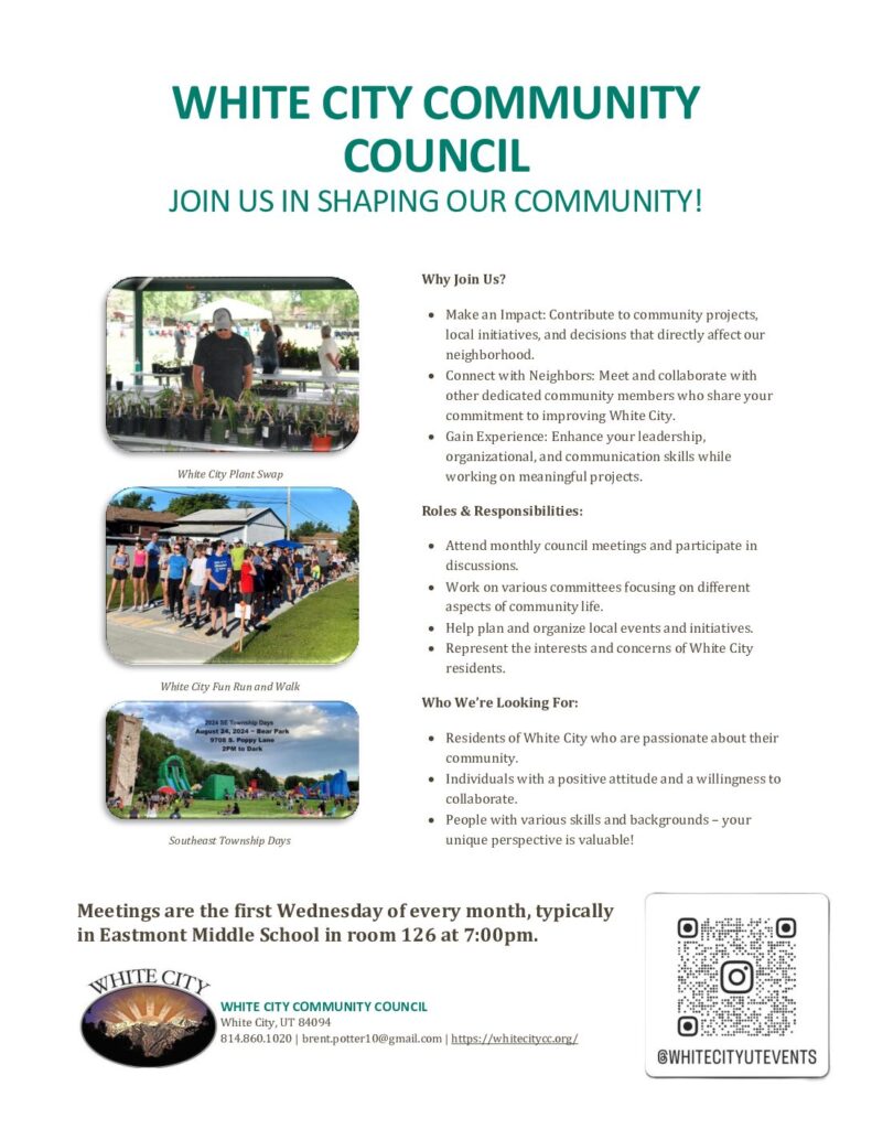 White City Community Council Meetings – Volunteers Needed! 🙌
